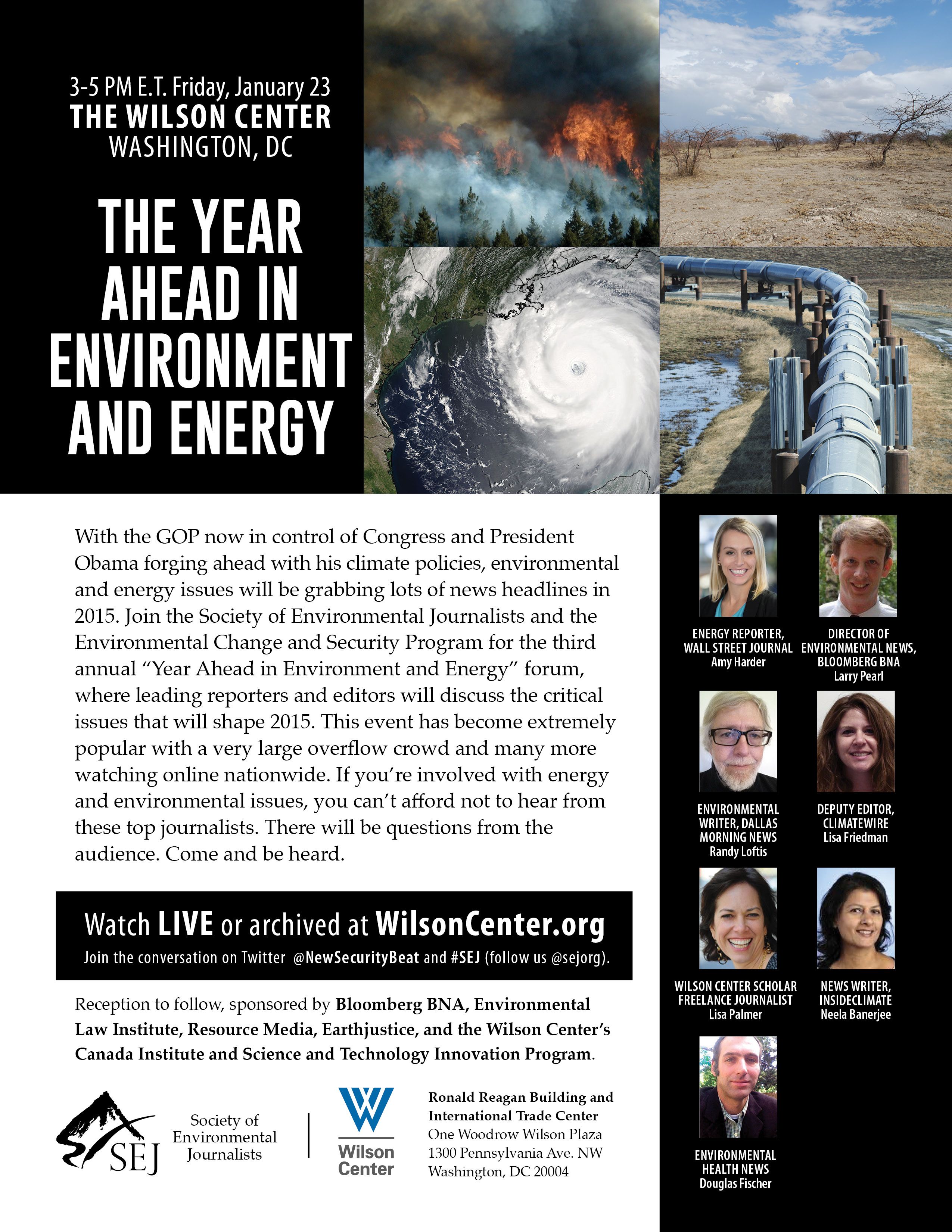 Larry Pearl, director of environmental news for Bloomberg BNA, will present Bloomberg BNA’s Environmental Outlook 2015, followed by a panel discussion moderated by Douglas Fischer, director of Environmental Health Sciences, and featuring journalists from the Wall Street Journal, InsideClimate News, Dallas Morning News, ClimateWire, and more.