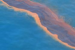 Heavy band of oil seen during an overflight on May 12, 2010. Credit: NOAA |